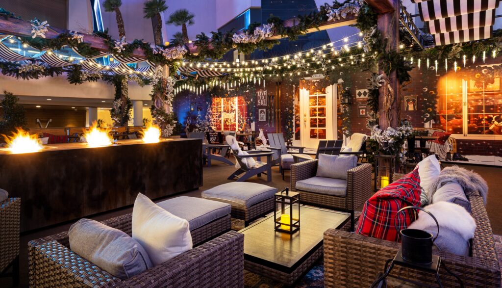 At The Chalet—a reimagined mountaintop village adorned with open-air fire pits and festive décor—guests can savor a variety of craft cocktails and holiday-inspired bites. Menu highlights include the French Onion Grilled Cheese, Beef Brisket Chili, and Beef Bulgogi Poutine. On Friday and Saturday nights, guests can enjoy slices from the resort’s iconic Secret Pizza, while a Sausage Cart serves bratwursts and hot dogs on Monday and Tuesday nights.